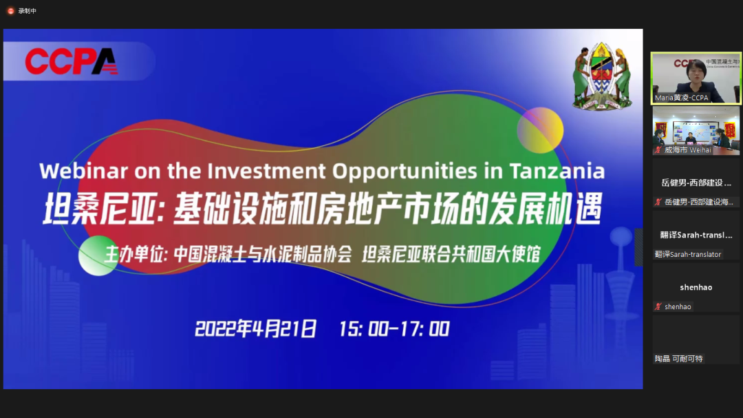 4月21日,“坦桑尼亚:基础设施和房地产市场的发展机遇”线上研讨会成功举办。市外办副主任张炜及外办有关科室人员收听收看,我市威建集团、国际经济技术合作股份有限公司、华坦供应链管理有限公司等企业线上参会。