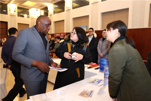 坦桑尼亚(威海—文登)采购洽谈会上,非洲采购商与我市企业积极洽谈合作。文宣供片