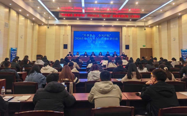 3月27日,威海市外办联合市司法局、贸促会、文登区外事服务中心等部门举办“外事惠企 春风护航”2026企业“走出去”政策宣讲行动。文登区镇街、园区负责人及区内外向型企业代表80余人参加行动。
